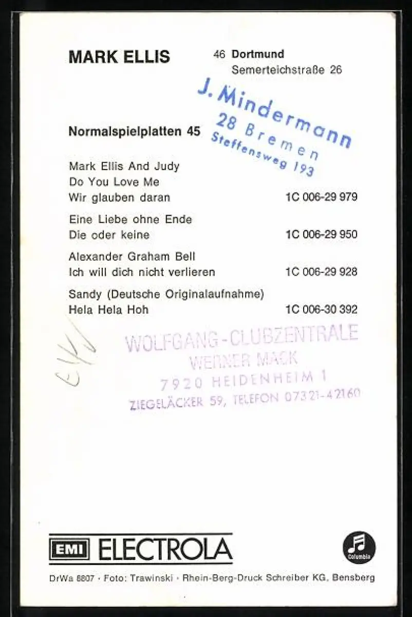 AK Sänger Mark Elles, Portrait mit seitwärts gerichtetem Blick, Autograph