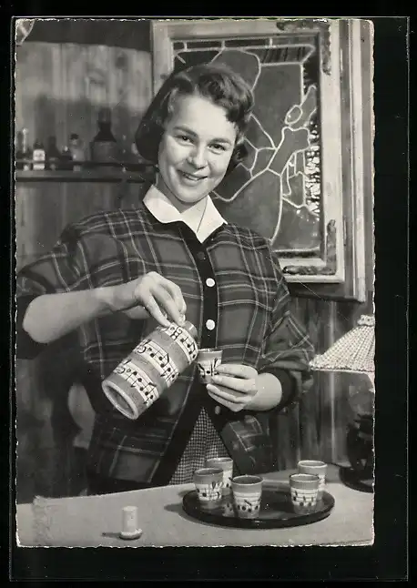 AK Sängerin Conny Froboess schenkt Getränke ein