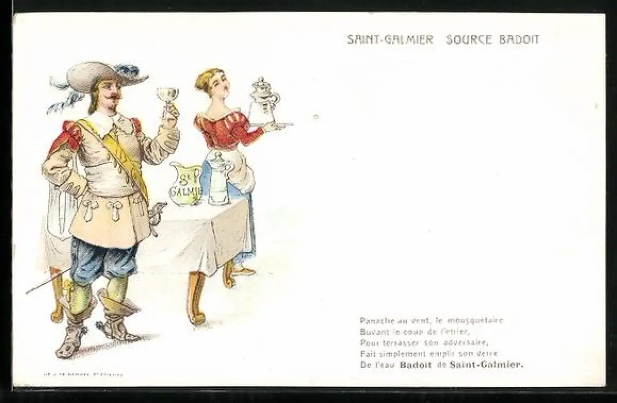 AK Saint-Galmier - Source Bardoit, Mineralwasser-Reklame, Edelmann und Schankmaid