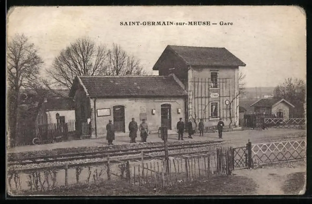 AK Saint-Germain-sur-Meuse, Gare avec voyageurs sur le quai