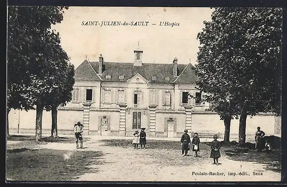AK Saint-Julien-du-Sault, L`Hospice avec personnages devant l`édifice