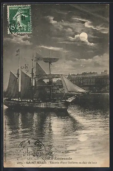 AK Saint-Malo, Rentrée d`une Goélette au clair de lune