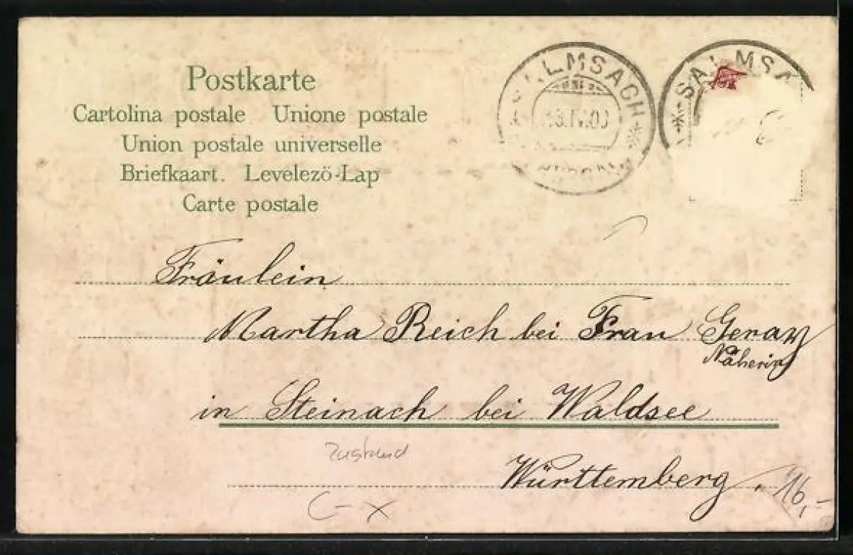 alte Ansichtskarte, gelaufen, Briefmarke entfernt, rückseitig Oberflächenschaden, guter Zustand