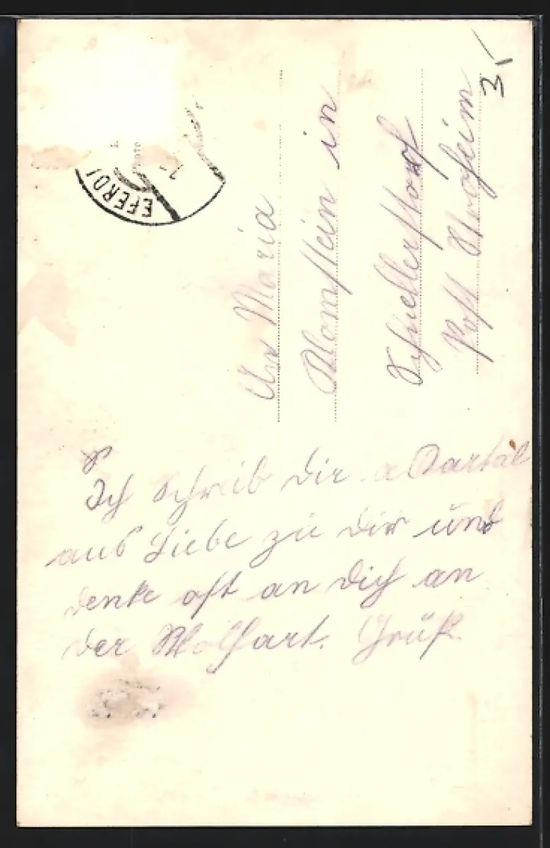 alte Ansichtskarte, gelaufen, Briefmarke entfernt, rückseitig Oberflächenschaden, guter Zustand