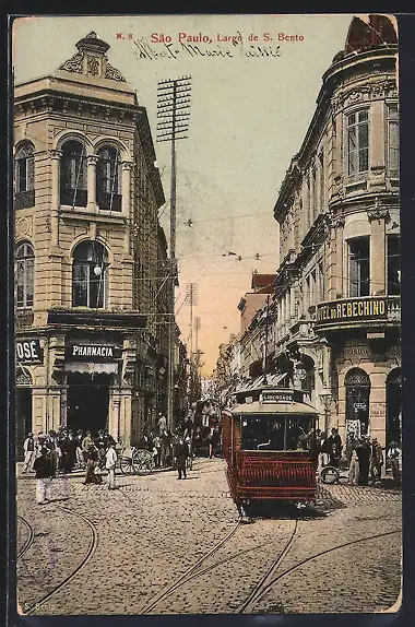AK Sao Paulo, Largo de S. Bento, Strassenbahn
