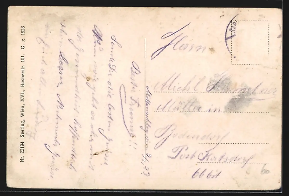 alte Ansichtskarte, gelaufen 1923, Briefmarke entfernt, rückseitig Oberflächenschaden, guter Zustand