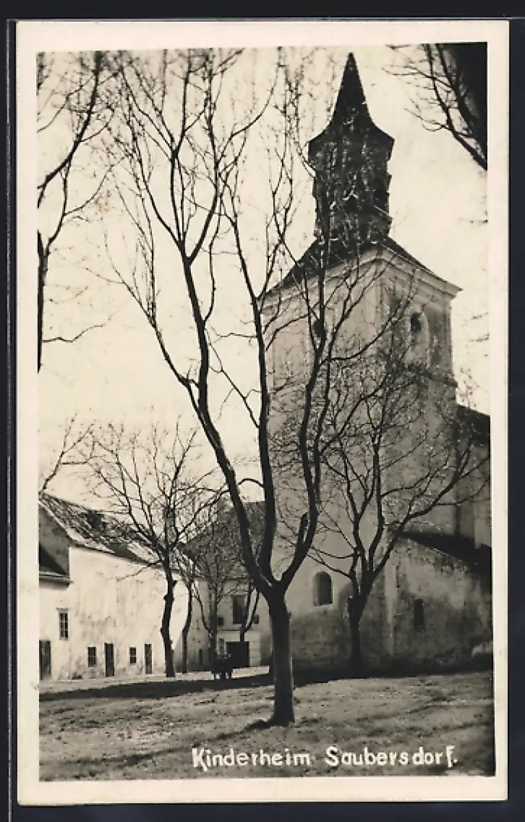 AK Saubersdorf, Blick auf den Turm des Kinderheims