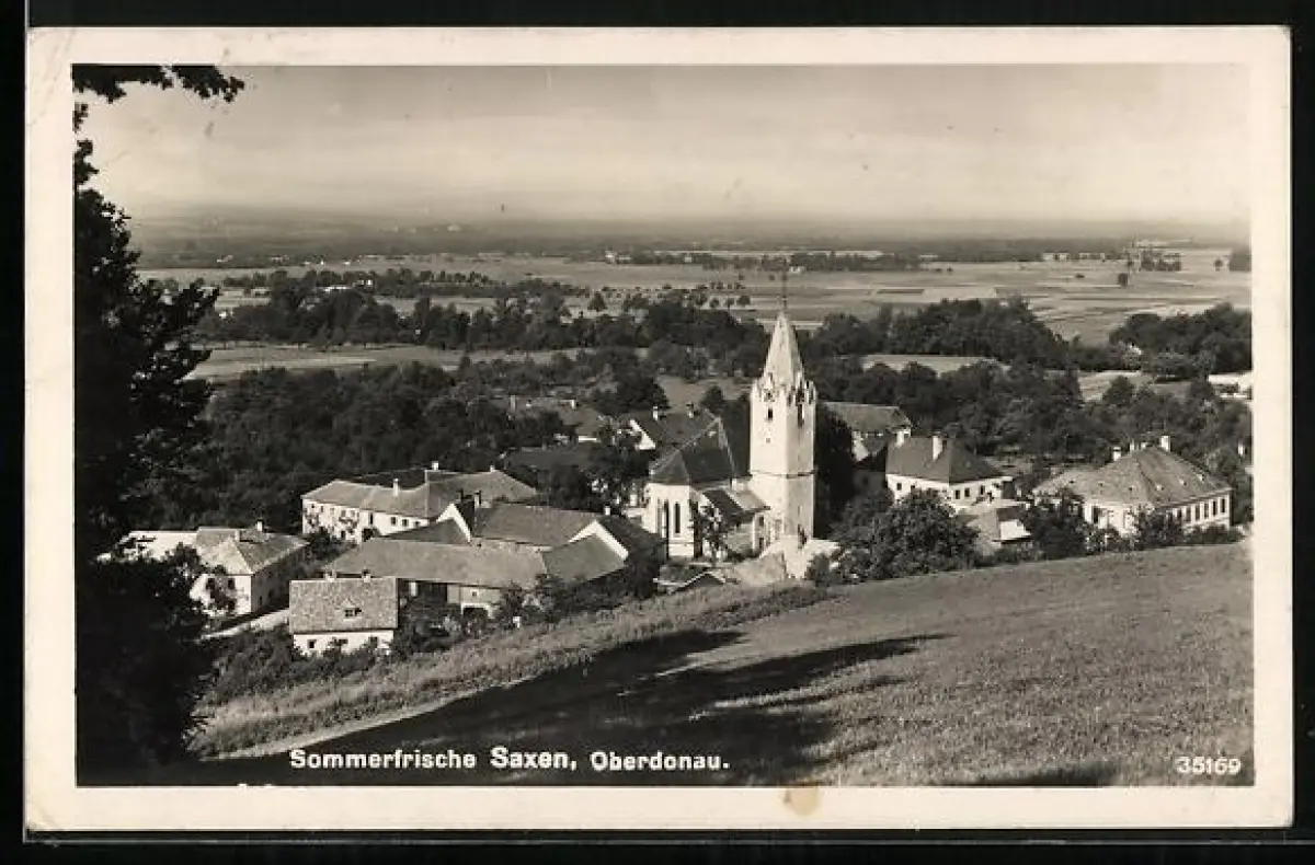 AK Saxen /Oberdonau, Ortspanorama mit Kirche