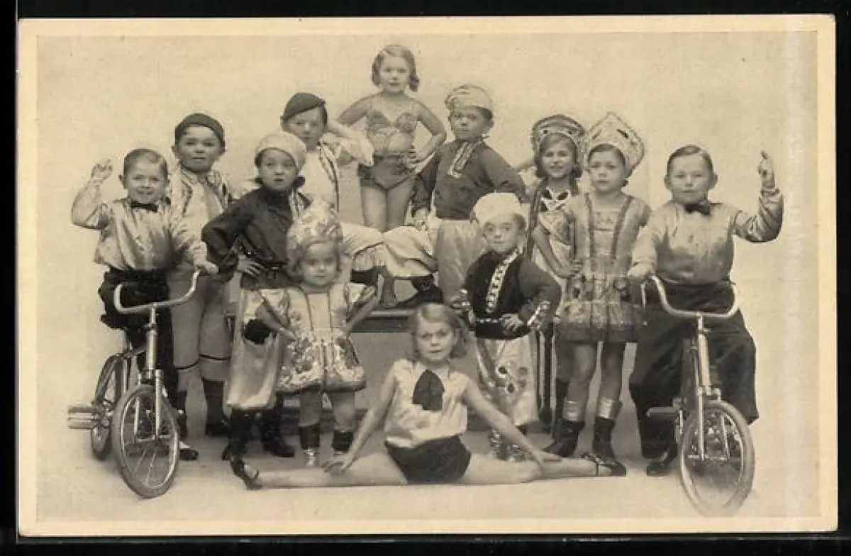 AK Schäfers Universal Lilliputters Troep, Liliputaner mit Fahrrädern