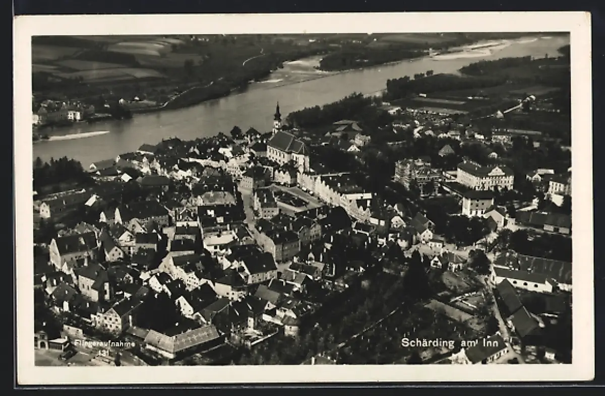 AK Schärding am Inn, Totalansicht vom Flugzeug aus