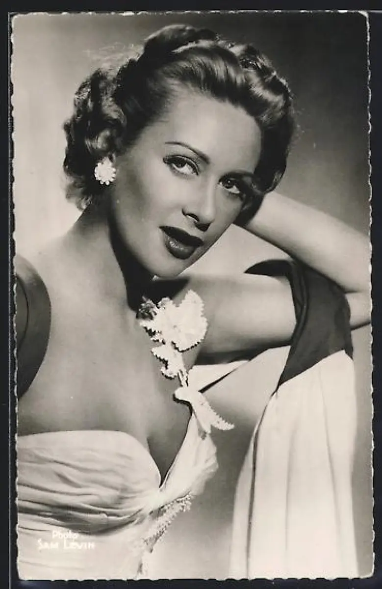 AK Schauspielerin Martine Carol nachdenklich in die Kamera blickend