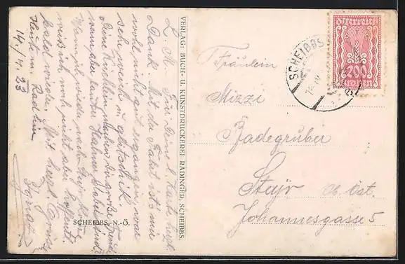 alte Ansichtskarte, gelaufen 1923, rückseitig Oberflächenschaden, guter Zustand