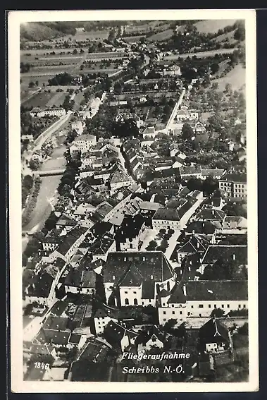 AK Scheibbs, Ortschaft aus der Luft gesehen, Fliegeraufnahme