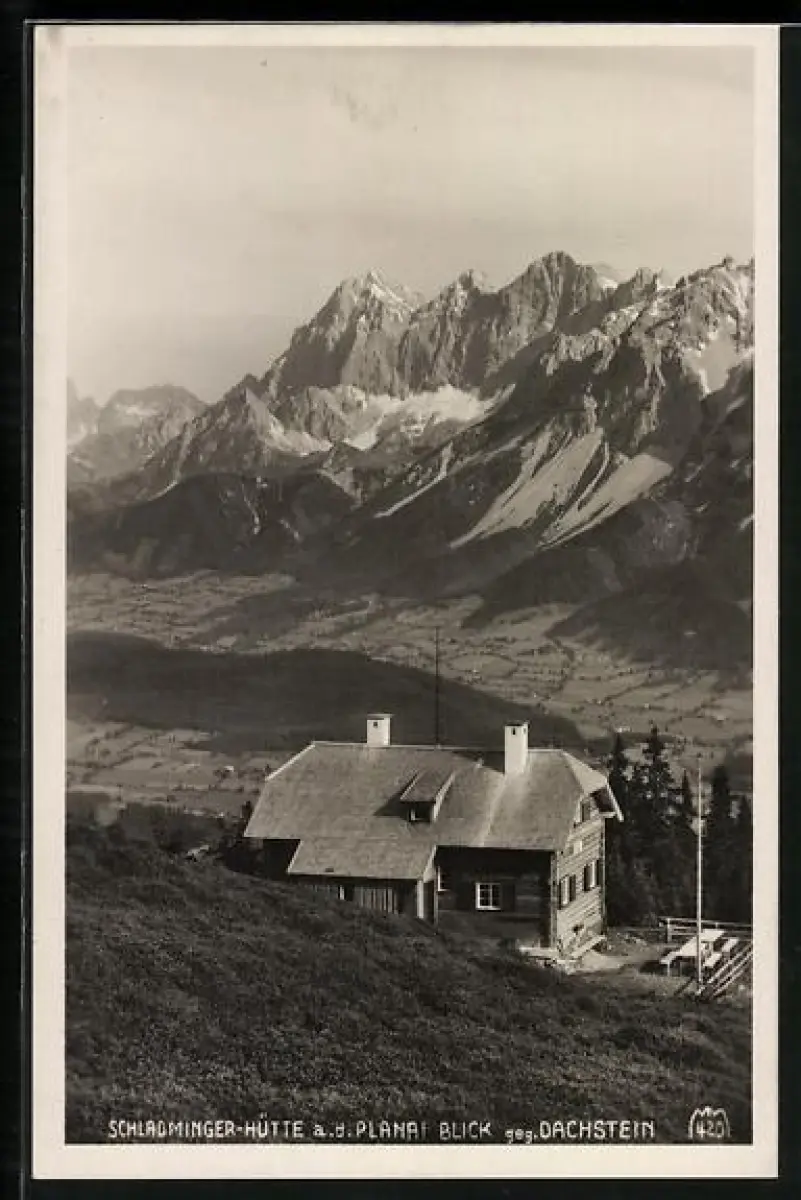 AK Schladming, Schladminger Hütte auf der Planei, Blick gegen Dachstein