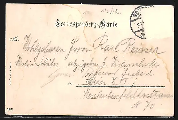 alte Ansichtskarte, gelaufen, Briefmarke entfernt, rückseitig Oberflächenschaden, guter Zustand