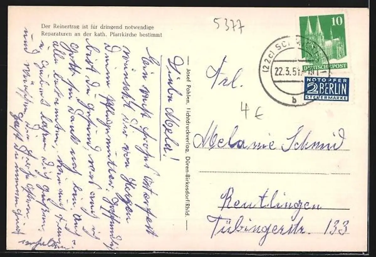 alte Ansichtskarte, gelaufen 1951, guter Zustand