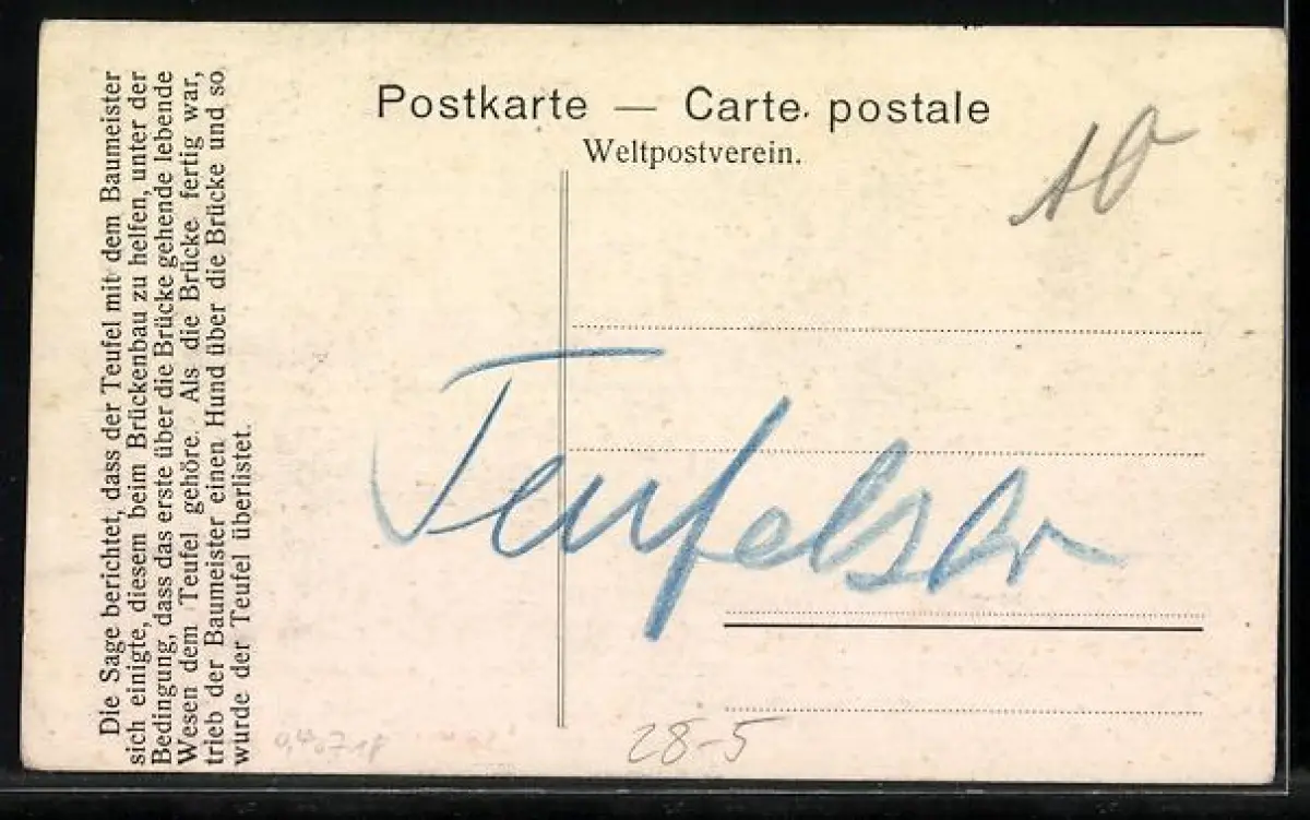 AK Schöllenen, Gruss von der Teufelsbrücke, Hund verwehrt Teufel die Überquerung der Brücke