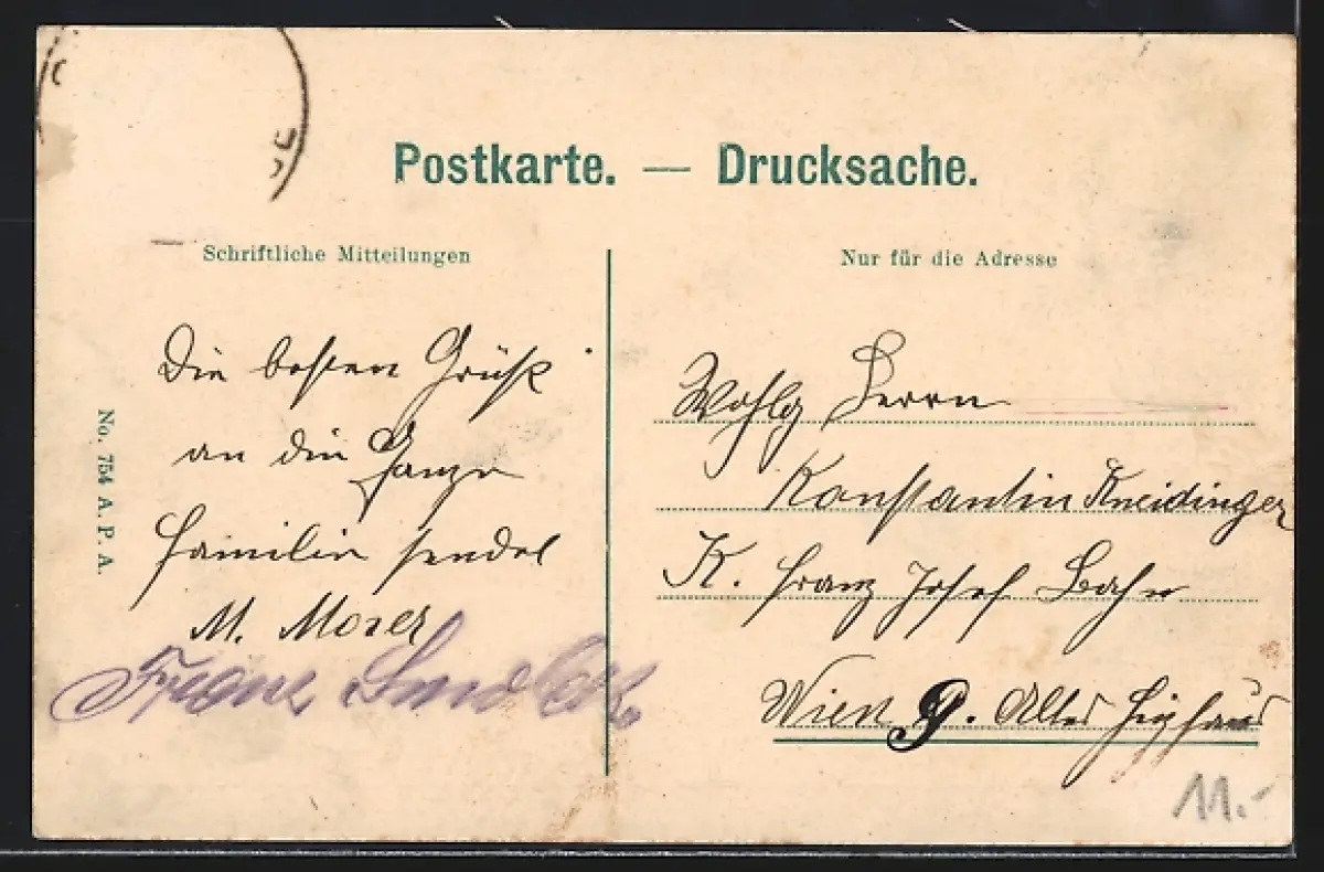 alte Ansichtskarte, gelaufen, Briefmarke entfernt, rückseitig Oberflächenschaden, Eckknick li. oben, guter Zustand