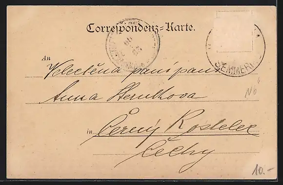 alte Ansichtskarte, gelaufen 1899, Briefmarke entfernt, rückseitig Oberflächenschaden, guter Zustand
