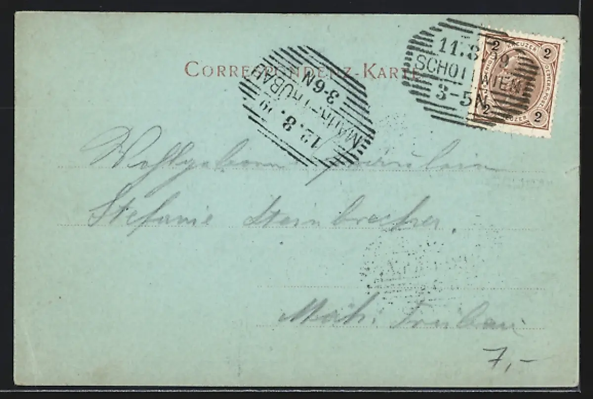 alte Ansichtskarte, gelaufen 1899, Eckknicke li. oben u. re. unten, minimaler Einriss li. mittig, guter Zustand