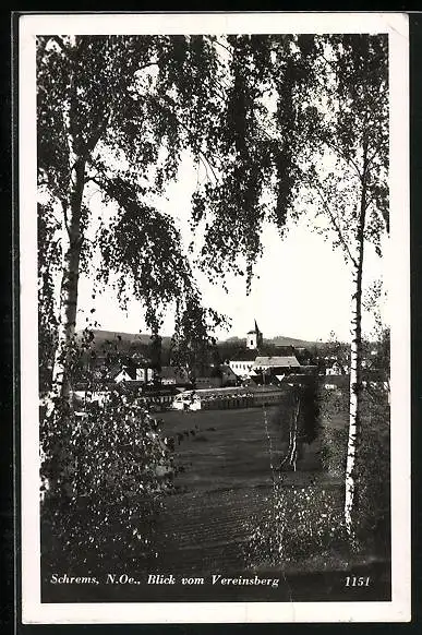 AK Schrems /N. Oe., Blick vom Vereinsberg mit Kirche