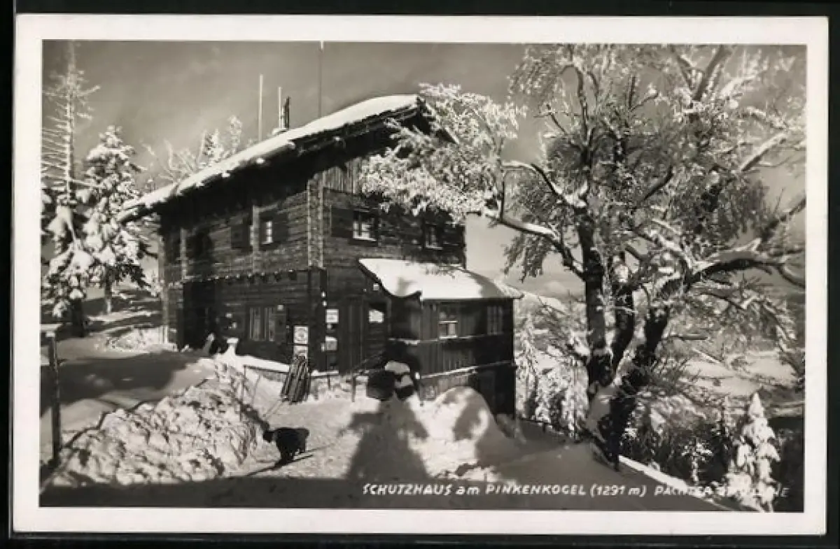 AK Schutzhaus am Pinkenkogel, Pächter Otto Lache, Winteransicht