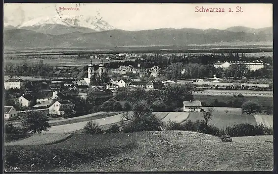 AK Schwarzau a. St., Ortsansicht mit Schneeberg