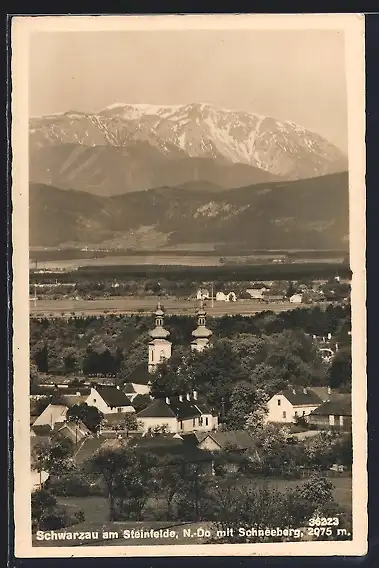 AK Schwarzau am Steinfeld, Ortsansicht mit Schneeberg