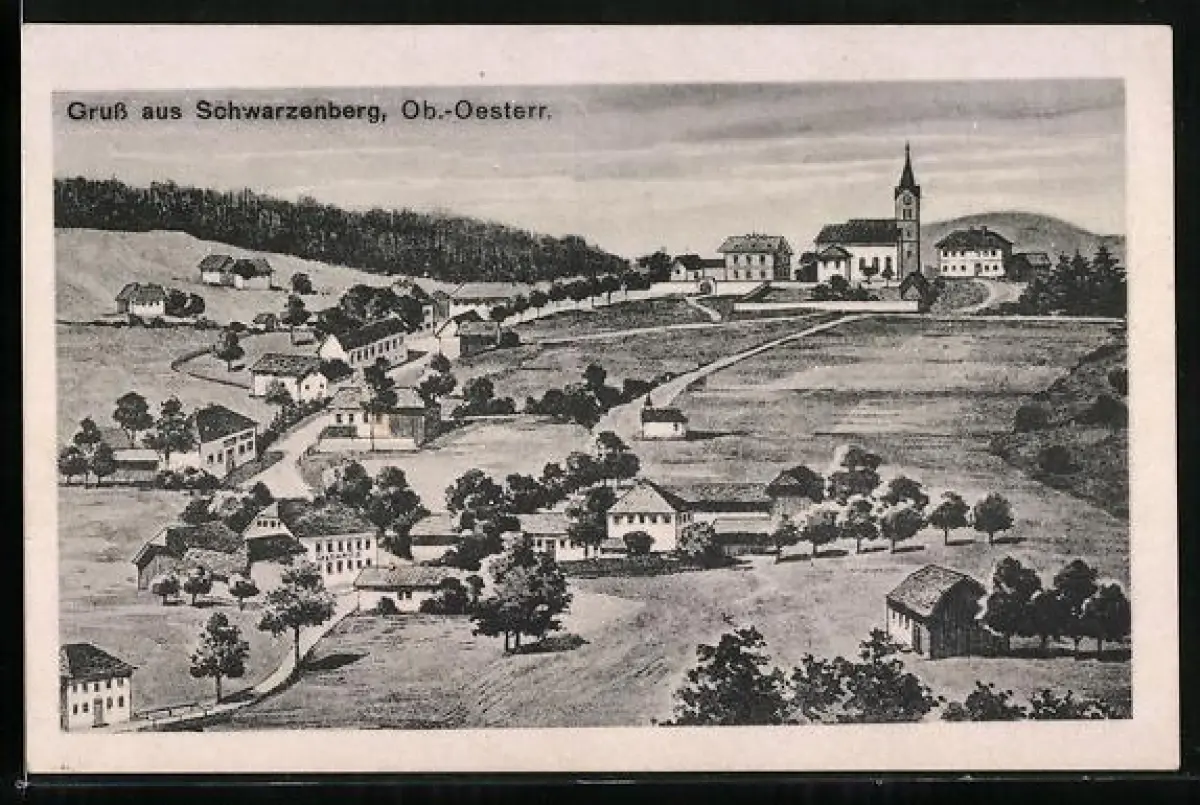 AK Schwarzenberg, Panoramablick auf die Ortschaft mit Kirche