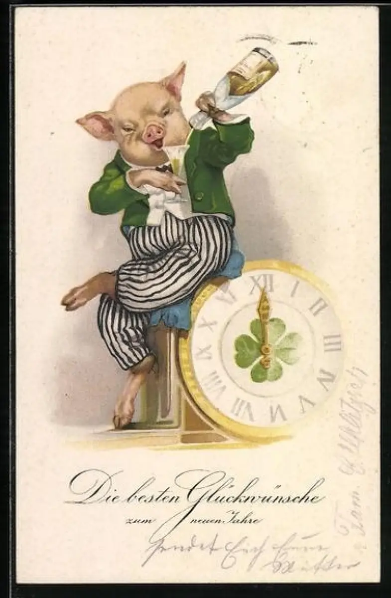 AK Schwein im Anzug beim Sekttrinken, vermenschlichte Tiere