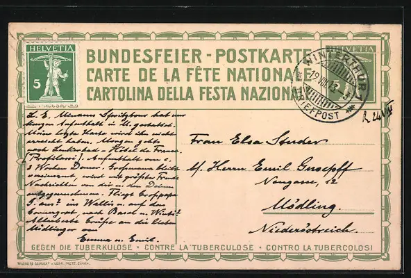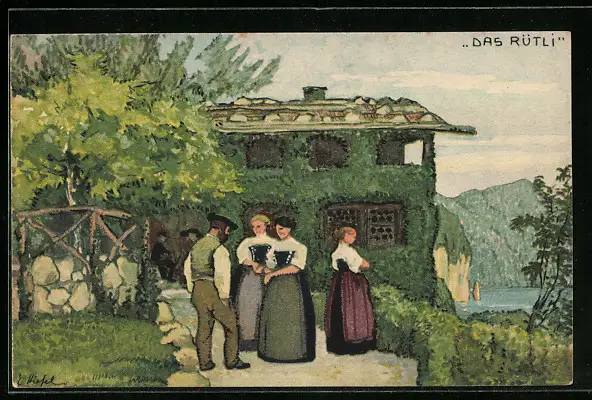 AK Schweizer Bundesfeier 1913, Menschen in Tracht, Das Rütli, Ganzsache