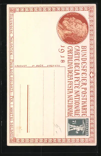AK Schweizer Bundesfeier 1918, Versammlung, Ganzsache