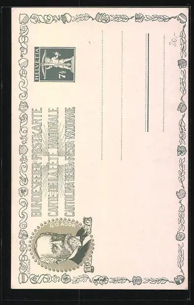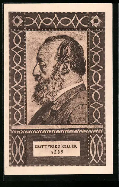 AK Schweizer Bundesfeier 1919, Gottfried Keller im Porträt, Ganzsache