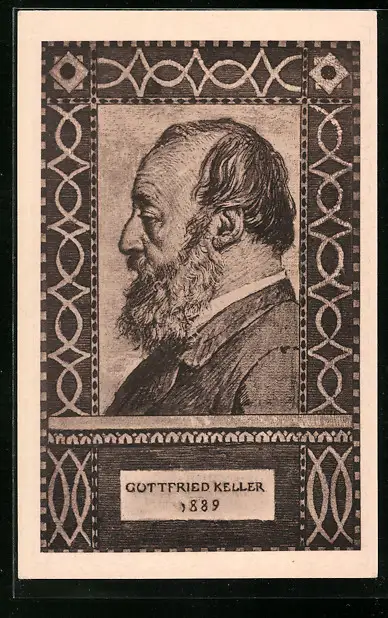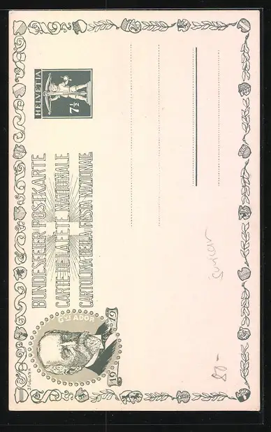 AK Schweizer Bundesfeier 1919, Gottfried Keller im Porträt, Ganzsache