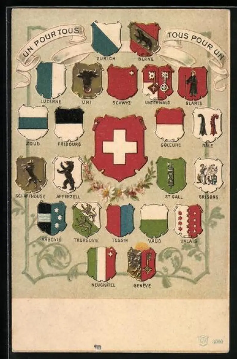 AK Schweizer Wappen mit Motto Un pour tous, tous pour un