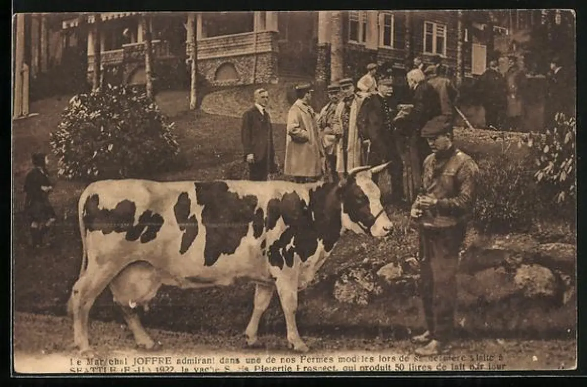 AK Seattle, Le Marechal Joffre admirant dans une de nos Fermes modeles la vache Segis Pietertje Prospect