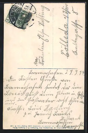 alte Ansichtskarte, gelaufen 1914, kleiner Einriss re. mittig, guter Zustand