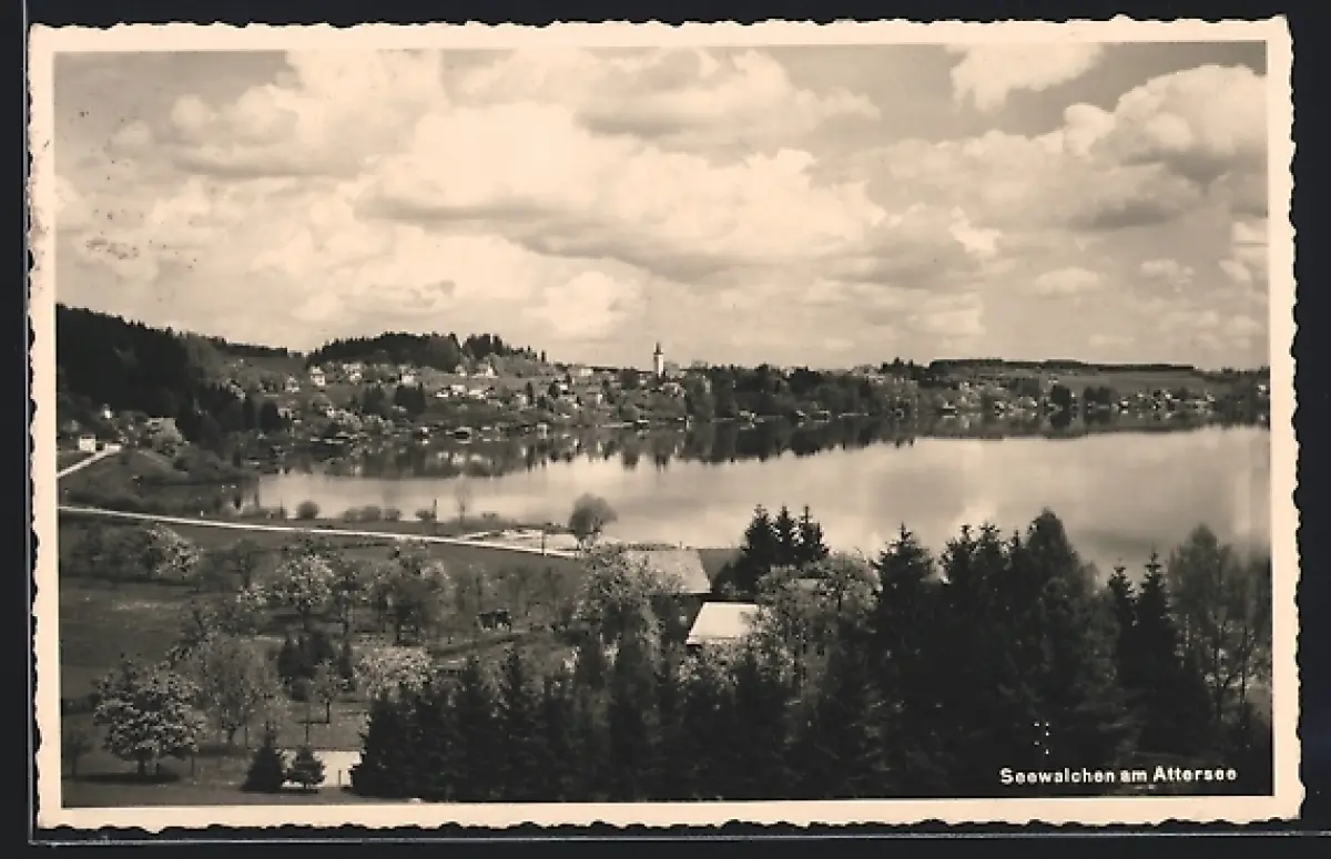 AK Seewalchen am Attersee, Panorama mit Bäumen