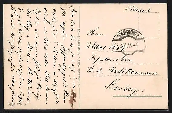alte Ansichtskarte, gelaufen 1915, Stecknadelloch re. unten, Abriebspur li. unten, guter Zustand