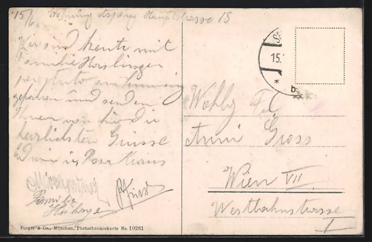 alte Ansichtskarte, gelaufen, Briefmarke entfernt, guter Zustand