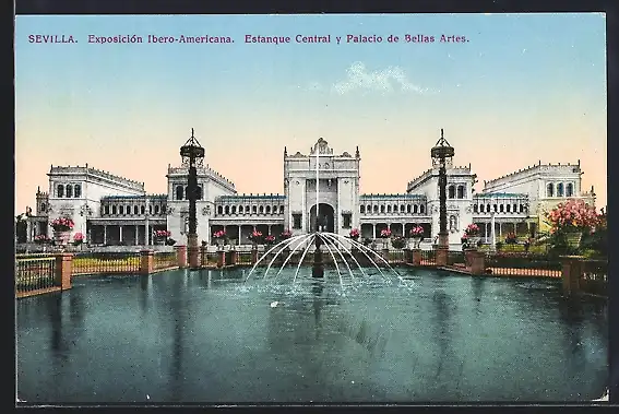 AK Sevilla, Exposición Ibero-Americana, Estanque Central y Palacio de Bellas Artes