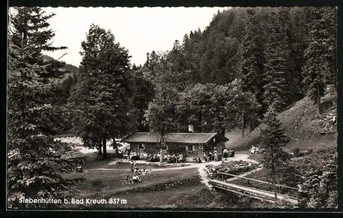 AK Siebenhütten b. Bad Kreuth, Almhütte im Wald