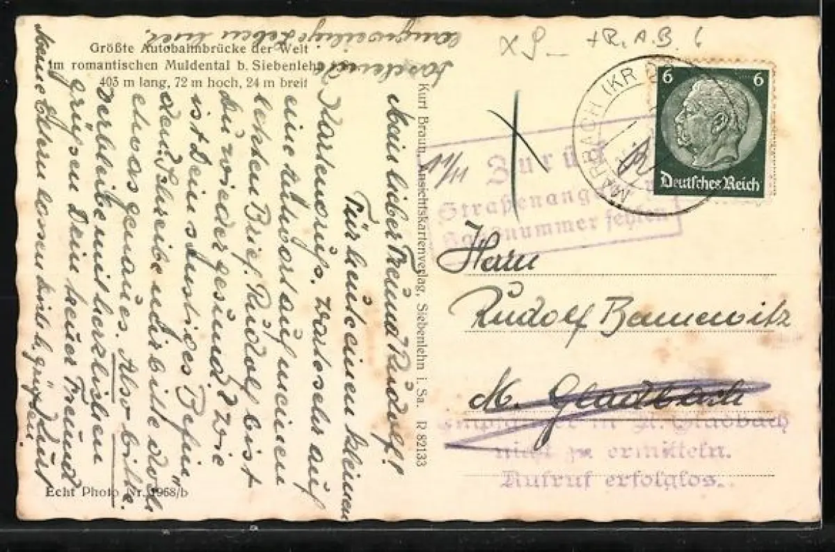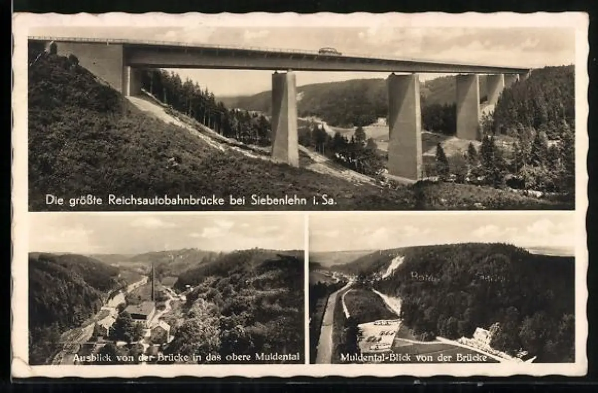 AK Siebenlehn i. Sa., Reichsautobahnbrücke, Ausblick ins obere Muldental, Muldental-Blick von der Brücke