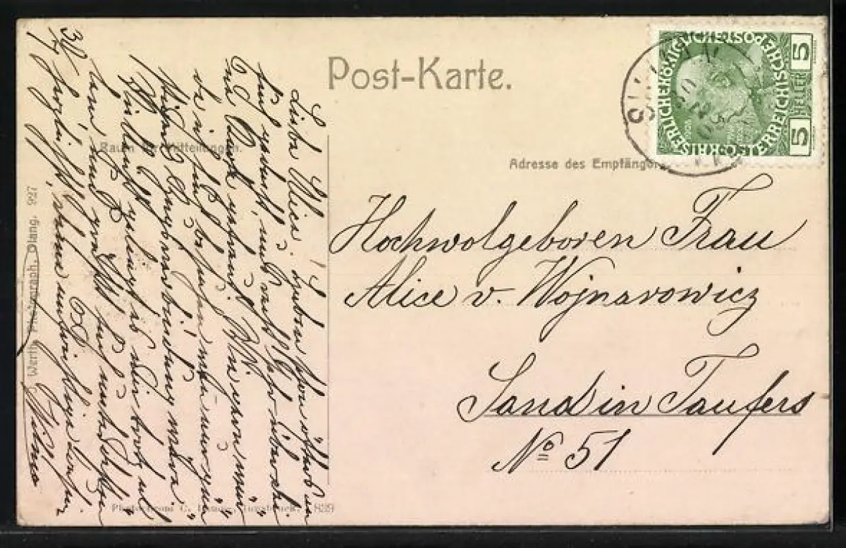 alte Ansichtskarte, gelaufen 1909, Eckknick li. unten, guter Zustand