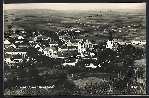 AK Sitzendorf a. d. Schmida, Ortsansicht aus der Vogelschau