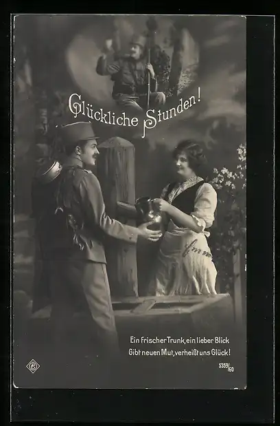 AK Soldat auf Heimatbesuch bei der Liebsten, Glückliche Stunden