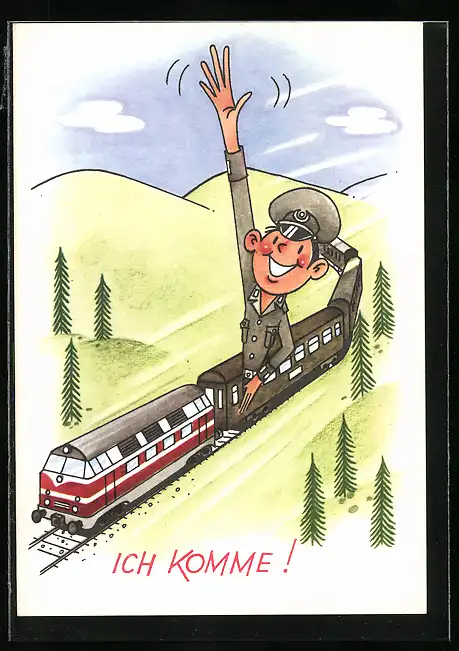 AK Soldat der NVA kommt mit dem Zug nach Hause