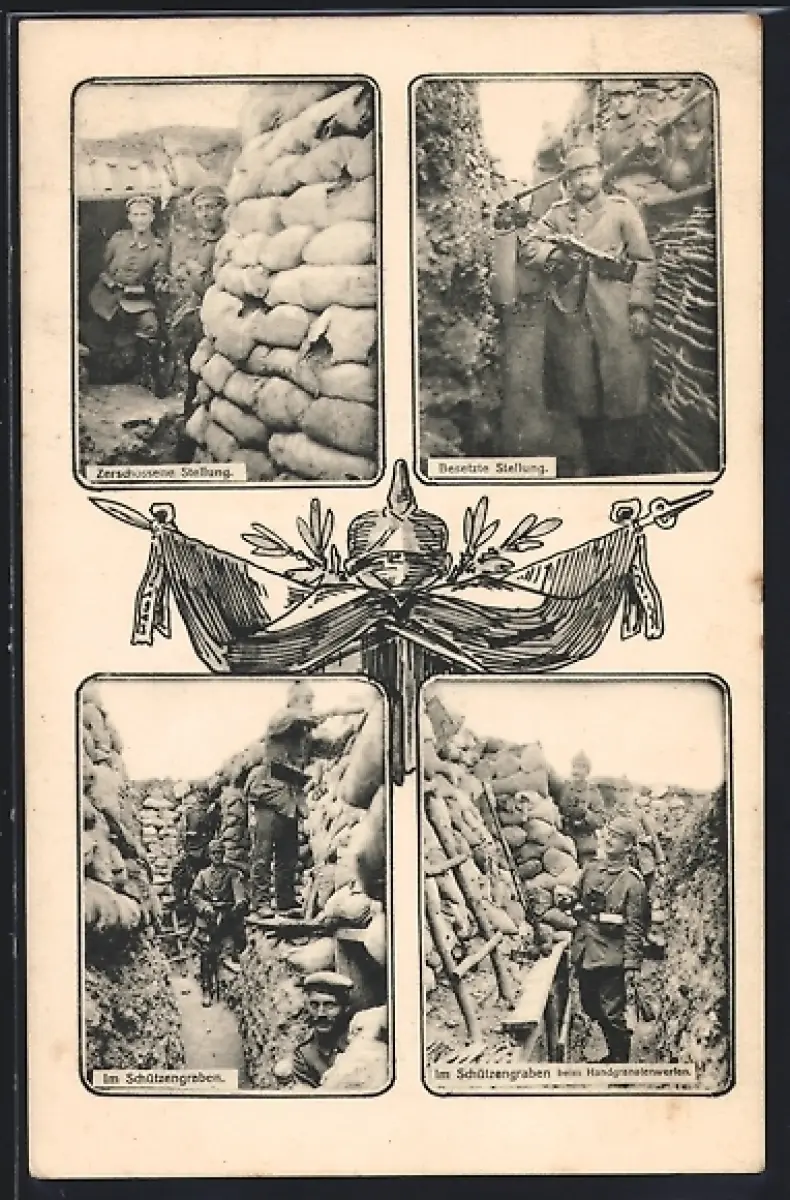 AK Soldaten im Schützengraben, 4 Ansichten