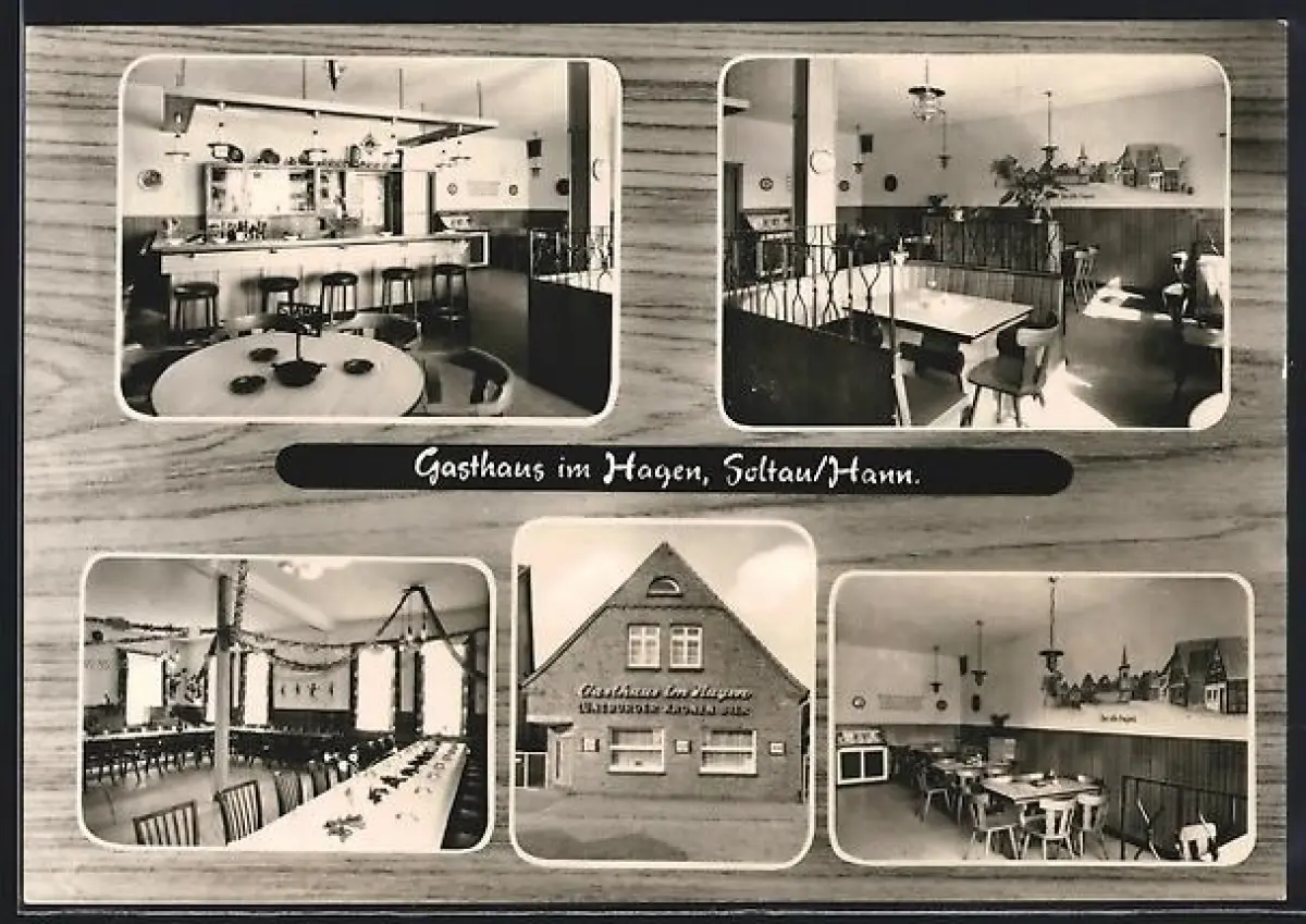 AK Soltau /Hann., Gasthaus im Hagen A. Lüth, Aussen- u. Innenansichten