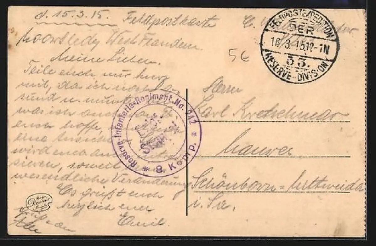 alte Ansichtskarte, gelaufen 1915, Eckknick oben li., guter Zustand
